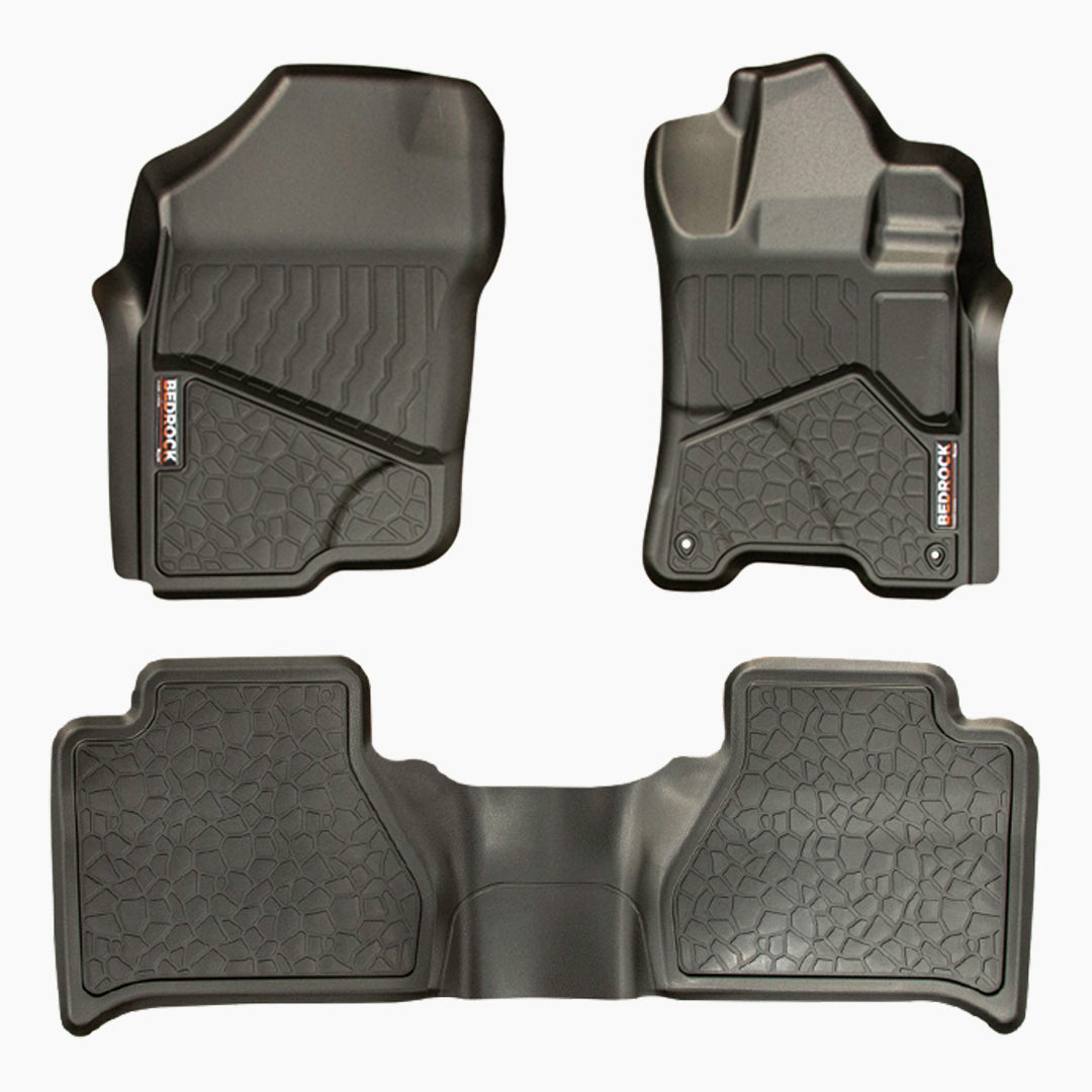 The Bedrock Liner has no gaps and features door-to-door protection to keep your vehicle in its best condition inside and out, where no spills will be getting through onto your floor. The "rock" and "water" designed patterns ensure liquid drains away from your feet to provide maximum grip under foot.