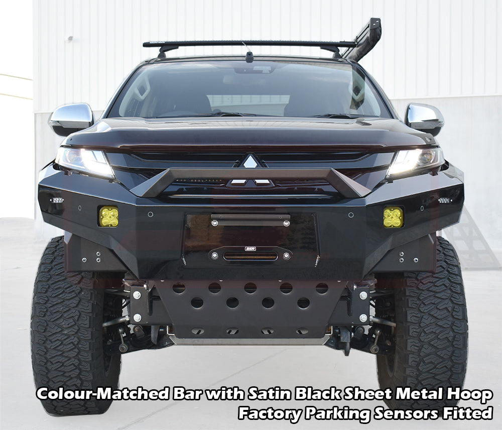Mitsubishi MR Triton Ambush Customer Painted Sheet Metal Hoop Bar, Pre-Runner Infill (2" Body Lift), Splash Guards, Slimline Black Fairlead, Sensors