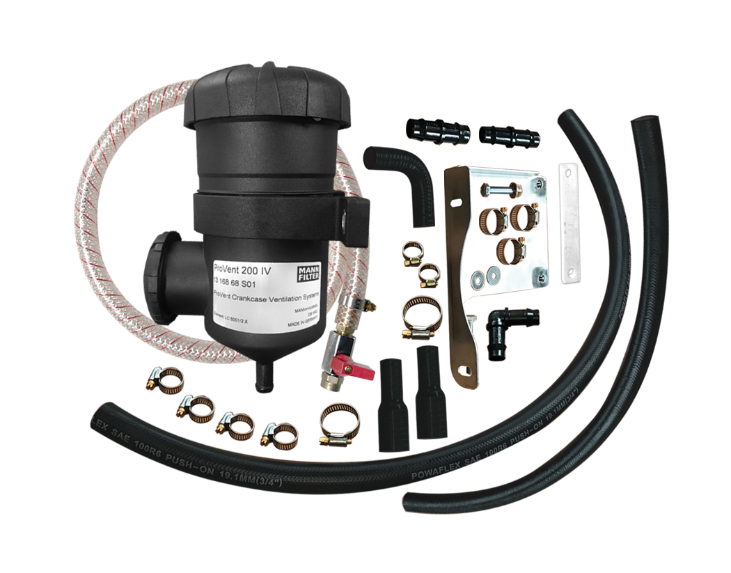 This Western Filters kit uses the Mann+Hummel Provent 200 – the leading catch can / crankcase breather on the market ! This unit will stop all contaminates going back into your air intake manifold and we believe remove the need to block off your EGR valve, as there will be no oily residue in the system.