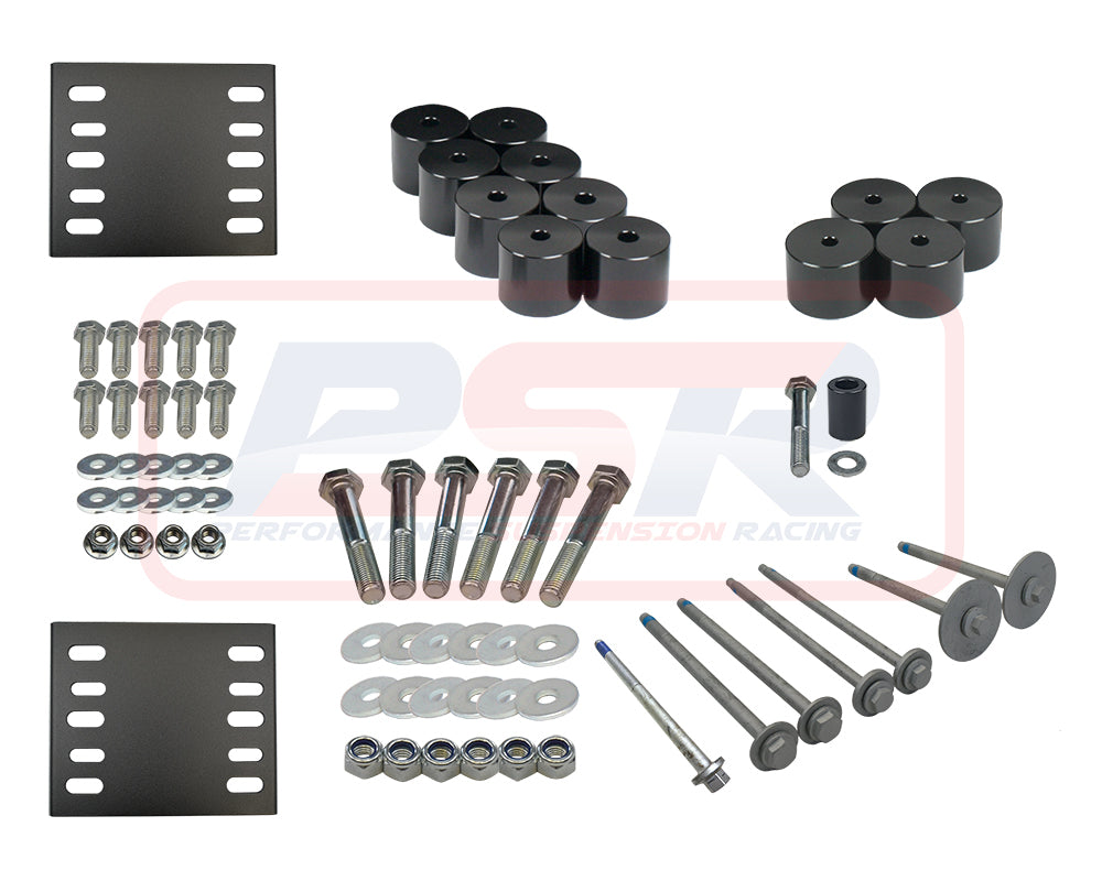 PSR offers a complete bolt-in 2" body lift kit for a dual cab variation with a tray. Kit is supplied with high tensile bolts and blocks to the size or larger than OE body mounts to be compliant. This kit also includes a pair of front reo bar lift brackets to allow the factory reo to be retained if plastic bumper is still fitted to vehicle. Kit is complete with no additional items to purchase to body lift your Ford Ranger Next Gen. Blocks are machined from 6061 T6 Alloy block and anodized black.