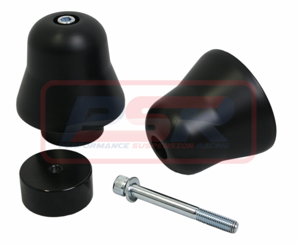 Nissan Navara NP300 Coil Rear Drop Out Cones are made from machine grade plastic rather than fabricated steel that is used by competitors. The main advantage with using plastic, is if a coil spring is contacted by a steel drop out cone it greatly increases the chance of causing a spring to break. Contact with a coil should be avoided at all costs. Another advantage over the competition is the fact that the drop out cone couples to an encapsulated nut eliminating the risk of the bolt seizing if required to be removed in the future. Drop out cones are used for keeping springs located in position when running longer travel shocks that allow more travel. Coil retainers are also available PSRNAV-098