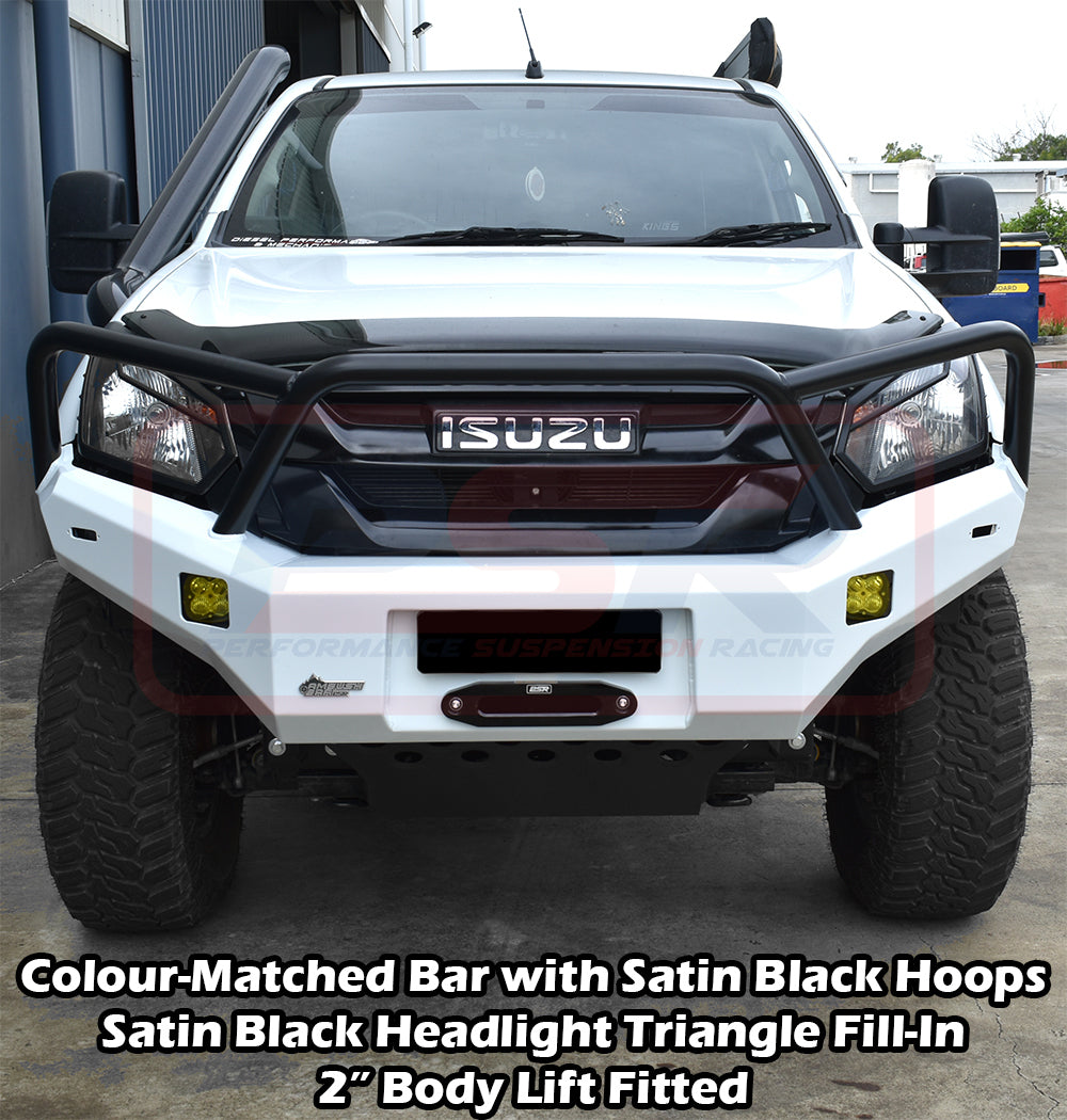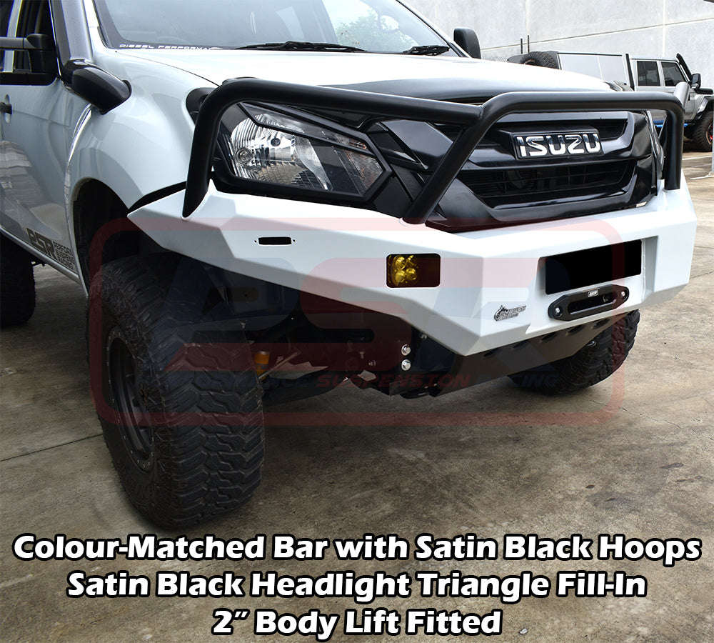 D-MAX 2 2017-2020 Ambush Satin Black Triple Hoop Bar, Pre-Runner Infill (2" Body Lift), Splash Guards, Slimline Black Fairlead