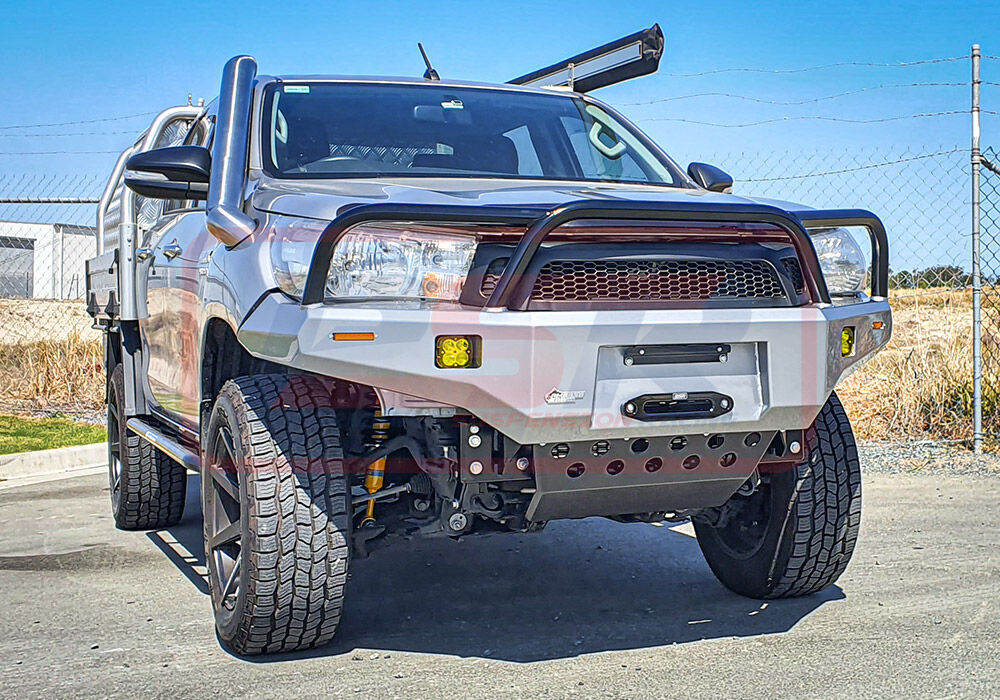 Hilux N80 MK2 6/18-4/20 Ambush Customer Painted Triple Hoop Bar, Pre-Runner Infill (2" Body Lift), Standard Silver Fairlead