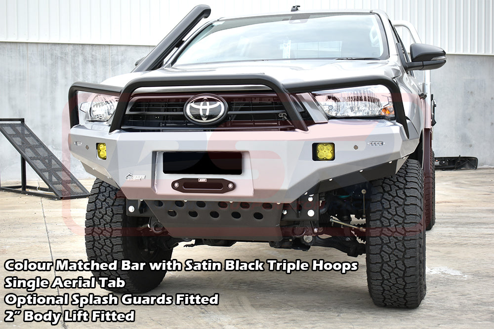 Hilux N80 MK3 5/20-On Ambush Customer Painted Triple Hoop Bar, Pre-Runner Infill (1" Body Lift), Slimline Black Fairlead, Sensors