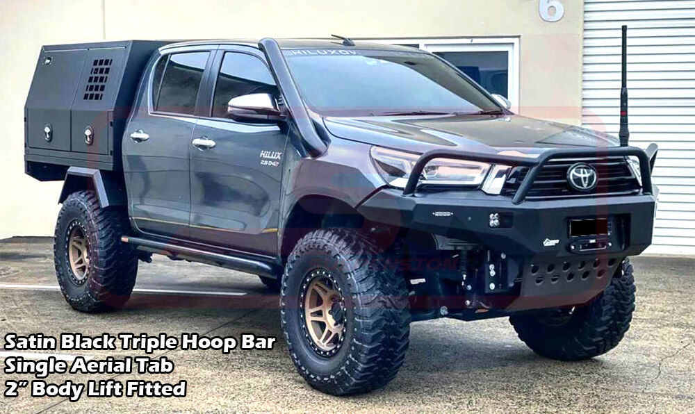 Hilux N80 MK3 5/20-On Ambush Customer Painted Triple Hoop Bar, Pre-Runner Infill (2" Body Lift), Slimline Silver Fairlead, Sensors, Camera