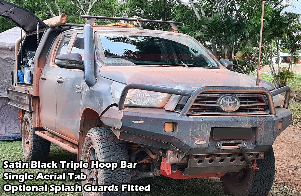 Toyota Hilux N80 MK3 5/20-On Ambush Colour Coded Bar, Satin Black Triple Hoop, Infill (2" Body Lift), Splash Guards, Standard Black Fairlead