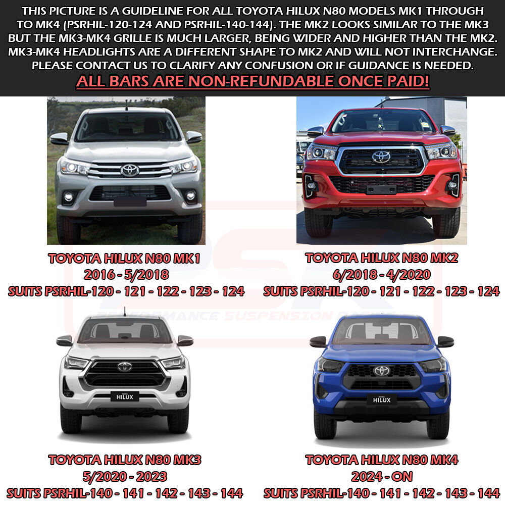 • Suits Toyota Hilux N80 MK4 2024-On ONLY (SEE SECOND PICTURE FOR MODEL GUIDANCE)
