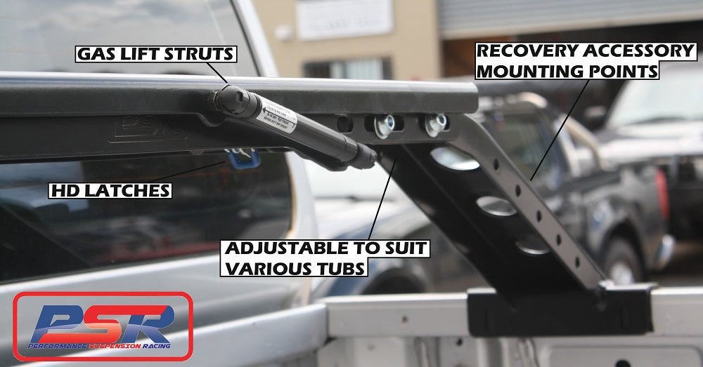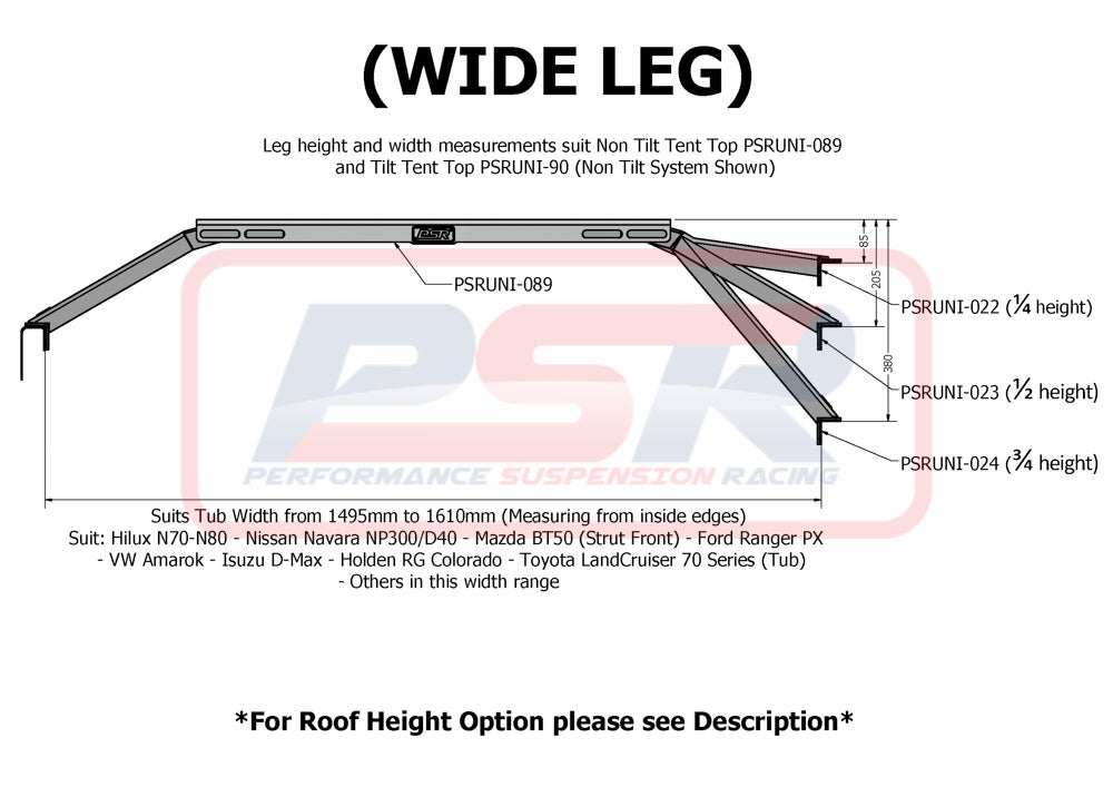 PSR has designed a Baja style Roof Top Tent mount to sit your Roof Top Tent over your tray. Suits ALL ute tubs between 1370mm and 1560mm tub width which is all your common cars, Hilux/Navara/Triton/Colorado/D-Max/Amarok/Ranger/BT-50 etc. Powder-coated Black.