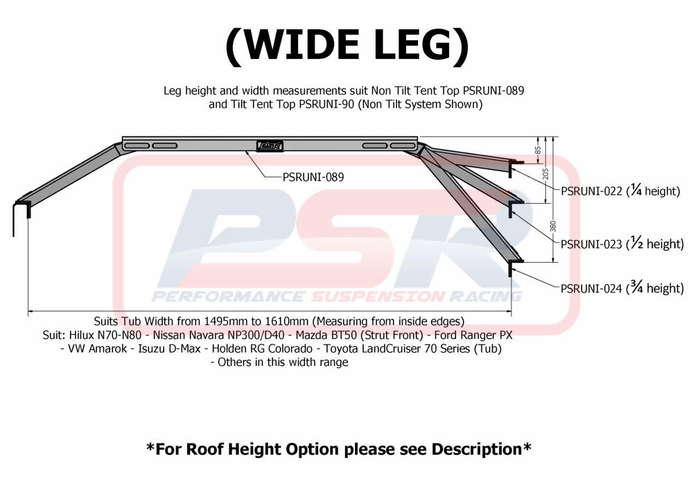 PSR has designed a Baja style Roof Top Tent mount to sit your Roof Top Tent over your tray. Suits ALL ute tubs between 1370mm and 1560mm tub width which is all your common cars, Hilux/Navara/Triton/Colorado/D-Max/Amarok/Ranger/BT-50 etc. Powder-coated Black.