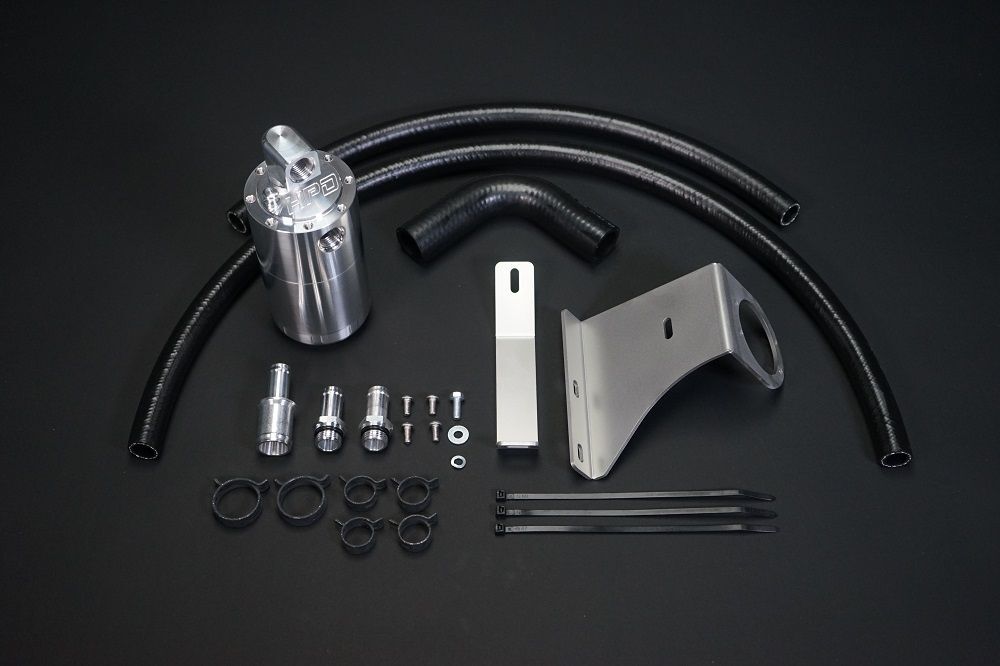 HPD’s oil catch can / oil separators come in universal and complete kits with all required stainless steel laser cut bracketry, correct size hose tail fitting, washable internal stainless mesh filters, cut to size oil resistant hosing, bolts, nuts, washer, spring clamps and installation instructions for each vehicle.