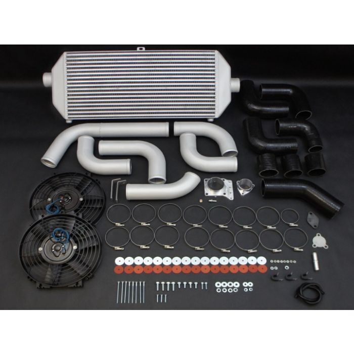 This kit comes with everything needed to do the installation, from all the nuts, bolts and washers twin 10†thermo fans to replace the factory condenser single fan, right through to the aluminium piping and quality silicon hose joiners.